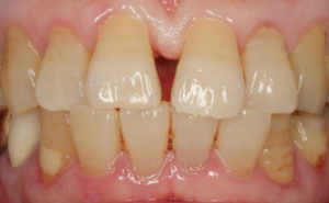 これは、2年以上前にレジン充填により前歯の隙間を埋めた症例です。本日メインテナンスに来院されましたので、写真を撮らせて頂きました。