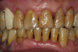 この方、実は80歳代の男性です。もともと、外見はとても80歳には見えない程お若いのですが、さすがに歯の状態はそうはいかないようで、これまでの年月が刻み込まれた歯となっていました。