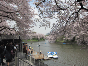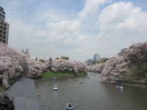 で、タイトルに話を戻しますと、せっかくお茶の水まで出かけるのなら、お天気もいいしお花見でもしようと、家内と次男を連れて千鳥ヶ淵と外堀通りにいってきました。世田谷に住む前は、学生時代からずっと飯田橋に住んでいましたので、この辺は庭みたいなものです。それでも、これほどタイミングよくお花見できるチャンスは滅多にありませんでした。日本武道館から丸の内公園を抜け、千鳥ヶ淵を通り、神楽坂下にあるカナルカフェでボートを漕いできました。お裾分けではありませんが、どうぞ満開の桜をご覧ください!