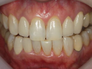 1.患者様の主訴:プラスチックで治したところの境目が汚いので綺麗にしたい。