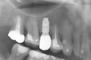 人工骨を使った骨造成術を行い骨が再生するのを半年程待ち、インプラントを入れた