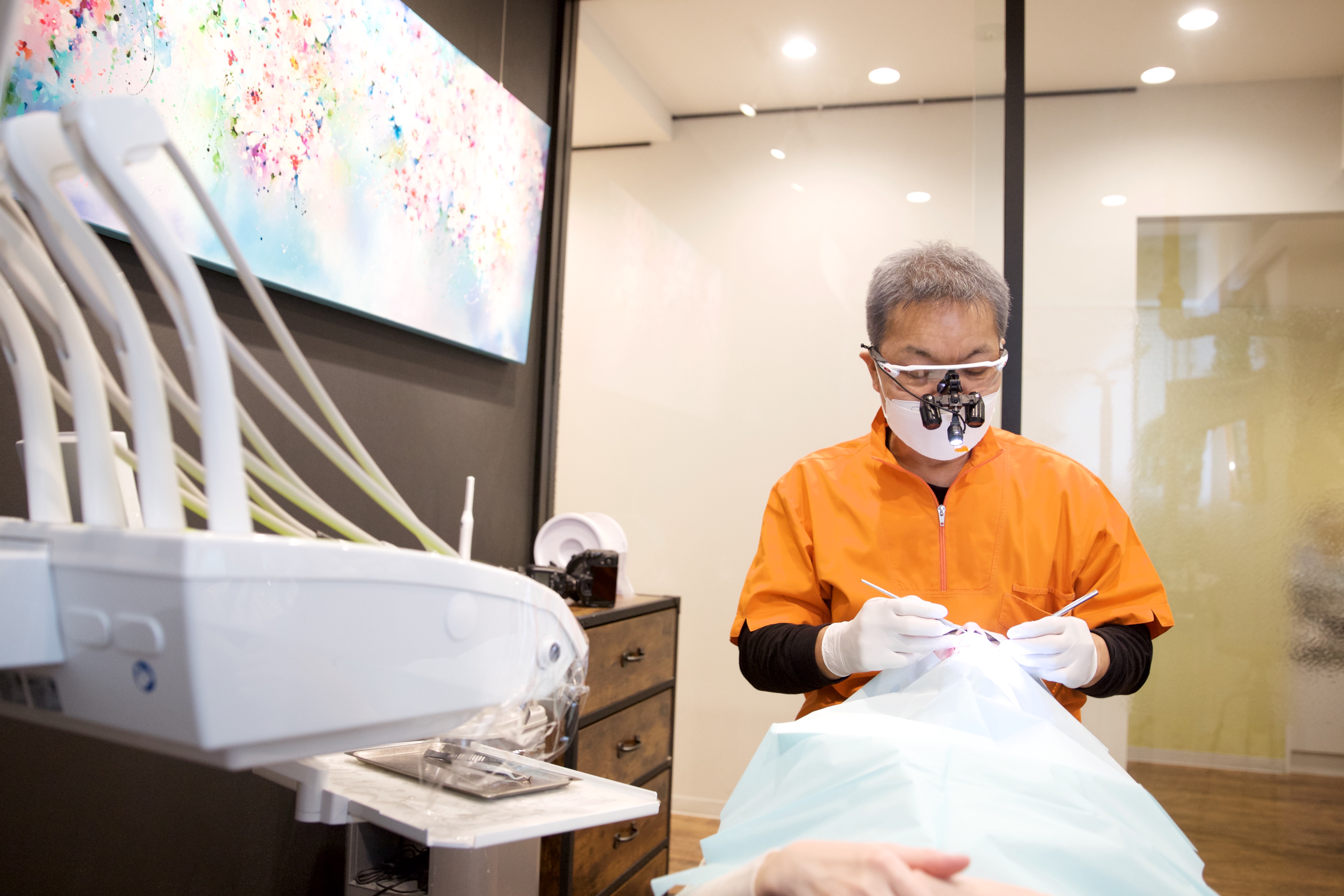 歯周再生療法とは 歯周再生療法は、歯周病によって失われた骨や歯周靭帯などの歯周組織の再生を促す外科的治療法です。歯周病が進行すると、歯を支える骨が溶けて歯周ポケットが深くなり、歯がぐらつき始め最終的には歯が抜け落ちてしまいます。従来の治療では、失われた骨や歯周靭帯などの歯周組織を元に戻すことは困難でしたが、再生療法により組織の回復が期待できるようになりました。 再生療法では、外科的に歯根を汚れを取り除く際に、特殊な薬剤を歯根に塗布することで、骨や歯根膜、セメント質といった歯周組織の再生を促します。半年ほどで歯周組織が再生し、歯を長期的に保存できる可能性が高まります。 ただし、すべての症例に適用できるわけではありません。骨の吸収パターンや歯周ポケットの形態、全身の健康状態などを総合的に判断し、適応があるかどうかを慎重に診断します。 歯周再生療法が適応となるケース 歯周再生療法は、特定の条件を満たす場合に効果が期待できます。骨の吸収が垂直的に起こっている症例や、歯の周囲に骨の壁が残っている場合に適しています。このような形態では、再生材料が保持されやすく、組織の回復が見込めます。 また、患者さまの全身状態が良好で、禁煙されている方、または禁煙に協力いただける方が対象となります。喫煙は組織の治癒を著しく妨げるため、再生療法の成功には禁煙が欠かせません。 当院の歯周再生療法における特徴 リグロスを使用した再生療法 当院では、リグロスという再生材料を使用しています。リグロスは、成長因子を含む薬剤で、歯周組織の再生を促進する効果があります。2016年に保険適用(但し、適用条件があります)となり、より多くの患者さまに再生療法を提供できるようになりました。 リグロスに含まれる成長因子は、細胞の増殖や血管の新生を促し、失われた骨や歯根膜の再生をサポートします。歯周外科処置の際に、清掃した歯の根の表面に塗布することで効果を発揮します。 従来の再生材料と比べて扱いやすく、良好な治療成績が報告されています。当院では、リグロスを使用した再生療法を提供しており、適応のある患者さまには積極的にご提案しています。 保険の適応条件を満たさない場合、ご希望があれば自由診療(55,000円)にて行なっています。 歯科用CTによる精密診断 再生療法の適応を判断するためには、骨の状態を正確に把握することが重要です。当院では、歯科用CTを導入しており、三次元的に骨の形態を確認できます。 CTで骨の吸収パターンや残存骨の量、歯周ポケットの深さを詳細に評価し、再生療法が有効かどうかを判断します。レントゲンだけでは分からない情報も得られるため、より精密な治療計画を立てることができます。 豊富な外科経験に基づく確実な処置 歯周再生療法は、歯周外科の技術が求められる治療です。当院の院長は、総合病院で7年間勤務した経験があり、外科処置に精通しています。 再生療法を成功させるためには、感染組織の徹底的な除去と、再生材料の適切な配置が重要です。丁寧な手技と的確な判断により、良好な治療結果を目指します。 術後の継続的なメンテナンス 再生療法を行った後は、長期的なメンテナンスが欠かせません。当院では、担当歯科衛生士制を導入しており、術後の経過を継続的に観察します。 定期的なクリーニングとブラッシング指導により、再生した組織を良好な状態に保ちます。患者さまと二人三脚で、歯の健康を守るお手伝いをいたします。 歯周再生療法の流れ 初診時には、歯周病の検査を行い、歯周ポケットの深さや骨の状態を確認します。レントゲンやCT撮影で、骨の吸収パターンを詳しく調べます。検査結果をもとに、再生療法の適応があるかどうかを判断し、治療計画をご説明します。 再生療法を行う前に、まず歯周基本治療を徹底的に行います。スケーリングやSRPで歯石を除去し、歯茎の炎症を落ち着かせます。この段階で、セルフケアの改善も重要です。正しいブラッシング方法を習得していただき、お口の中を清潔に保つ習慣を身につけます。 歯周基本治療で炎症がコントロールされたら、再生療法を行います。局所麻酔をして歯茎を切開し、歯の根を露出させます。歯石や感染した組織を徹底的に除去し、歯の根の表面を清掃します。その後、リグロスを塗布し、歯茎を元の位置に戻して縫合します。 術後は、抗生物質や鎮痛剤を処方します。1週間から2週間後に抜糸を行い、経過を観察します。再生した組織が安定するまでには数か月かかるため、定期的に通院していただき、レントゲンで骨の状態を確認します。 術後の経過と注意点 術後は、麻酔が切れると多少の痛みや腫れが出ることがあります。処方された薬を指示通りに服用し、安静に過ごしてください。手術当日は、激しい運動や長時間の入浴、飲酒は控えます。 食事は柔らかいものを選び、手術部位では噛まないようにします。歯磨きは手術部位を避