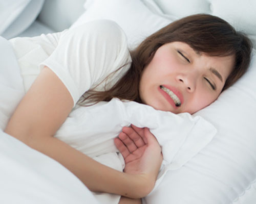 顎関節症を引き起こす因子は? ・歯ぎしりや食いしばりがある ・いつも右で噛んでいたり、左で噛んでいたりと偏っている ・ガムをよく噛んでいる ・うつぶせで寝ている ・吹奏楽器などの演奏や長時間歌を歌う行為 など、あごに負担のかかることを長時間行っているの主な原因として挙げられます。特に、歯ぎしりや食いしばりは長時間にわたってあごに負担をかけてしまうため、顎関節症になった方の8割に認められています。